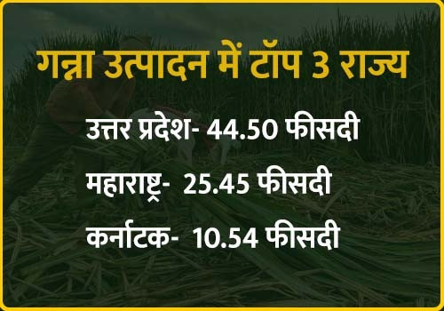 भारत में गन्ना उत्पादन के लिए 3 राज्य जानें जाते हैं, जिनका नाम उत्तर प्रदेश, महाराष्ट्र और कर्नाटक है। इन सभी में सबसे ज्यादा गन्ना का उत्पादन उत्तर प्रदेश में होता है। एग्रीकल्चर स्टेट बोर्ड के डेटा के मुताबिक उत्तर प्रदेश में 44.50 फीसदी, महाराष्ट्र में 25. 45 फीसदी और कर्नाटक में 10.54 फीसदी गन्ने का उत्पादन होता है।