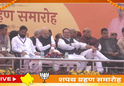 भजनलाल शर्मा आज राजस्थान के 14 वें सीएम बन गए। उन्होंने राज्य के मुख्यमंत्री पद की शपथ ली। इसके साथ ही राज्यपाल कलराज मिश्र ने दीया कुमारी और प्रेमचंद बैरवा को भी पद एवं गोपनीयता की शपथ दिलाई। दीया कुमारी और प्रेमचंद बैरवा को उप-मुख्यमंत्री बनाया गया है। इस मौके पर प्रधानमंत्री नरेंद्र मोदी, केंद्रीय गृह मंत्री अमित शाह और बीजेपी के राष्ट्रीय अध्यक्ष जेपी नड्डा की मौजूद थे। शपथ लेने के बाद भजनलाल ने प्रधानमंत्री का अभिवादन किया तो मोदी ने उनकी पीठ थपथपाई। वहीं, पूर्व मुख्यमंत्री अशोक गहलोत, वसुंधरा राजे और केंद्रीय मंत्री गजेंद्र सिंह शेखावत हंसी-मजाक करते दिखाई दिए।