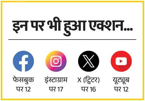 इसके साथ ही केंद्र सरकार ने 12 फेसबुक अकाउंट, 17 इंस्टाग्राम हैंडल, 16 एक्स (पहले टि्वटर नाम से मशहूर) आईडी और 12 यूट्यूब चैनल को भी ब्लॉक कर दिया है।