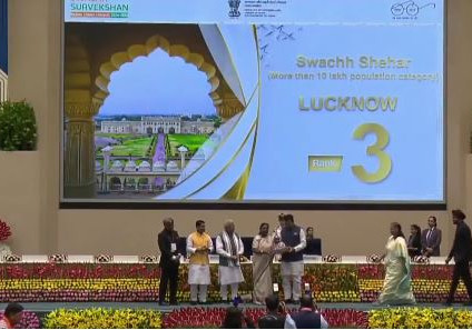 उत्तर प्रदेश की राजधानी लखनऊ ने स्वच्छता के क्षेत्र में ऐतिहासिक उपलब्धि हासिल करते हुए स्वच्छ सर्वेक्षण 2024 में देशभर में तीसरा स्थान प्राप्त किया है। यह सम्मान 10 लाख से अधिक आबादी वाले शहरों की श्रेणी में मिला है। राष्ट्रपति द्रौपदी मुर्मु ने नई दिल्ली के राष्ट्रपति भवन में आयोजित समारोह में लखनऊ को यह पुरस्कार सौंपा। इस दौरान केंद्रीय मंत्री मनोहर लाल खट्टर, नगर विकास मंत्री ए.के. शर्मा, मेयर सुषमा खर्कवाल और पूर्व नगर आयुक्त इंद्रजीत सिंह उपस्थित रहे।![]()